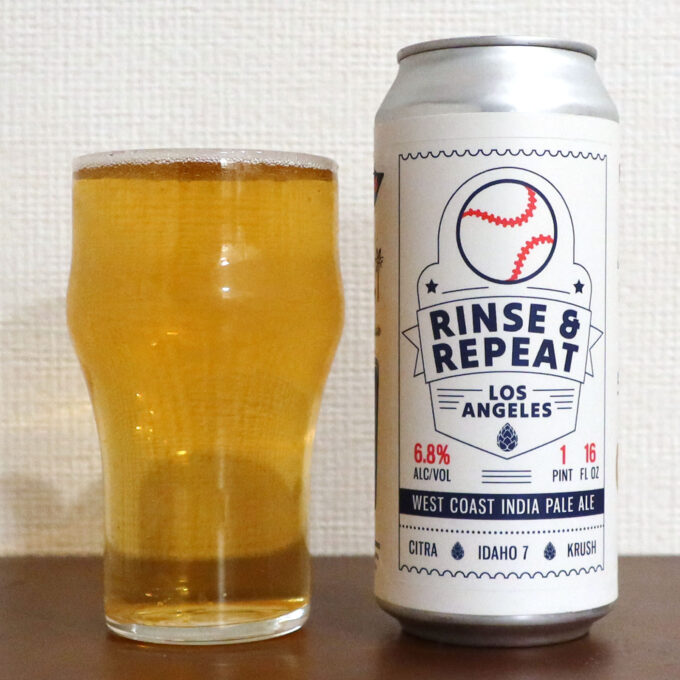 ロサンゼルス・ドジャースの開幕戦が日本で行われて、注目を集めていますが、「これ、コラボビール?」みたいな商品を見つけたのでいただいてみました。Los Angeles Ale Works(ロサンゼルスエールワークス)の Rinse & Repeat(リンス&リピート)というビールで、スタイルはウエストコーストIPAとのことです。