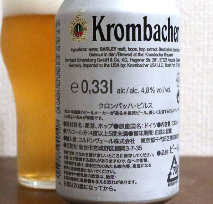 イオン系列のマックスバリュでドイツビール Krombacher Pils(クロンバッハ ピルス)が売っていたので買ってみました。ドイツのフーターズで1リットルいただいて以来です!