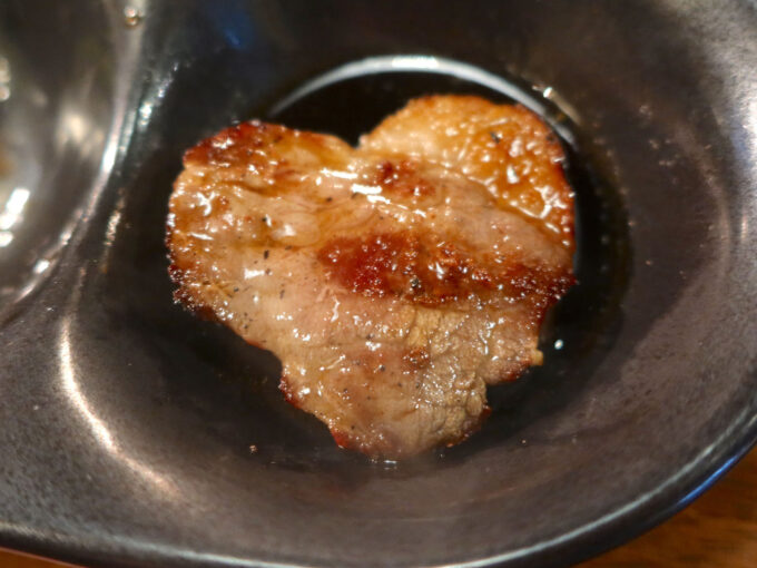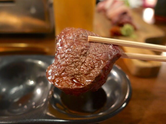 こちらをロースターで焼いていただきます。赤身なので、脂の香りはなく、タンパクで美味しくいただけます。柔らかさも程よくて、いくらでも食べられそうです。