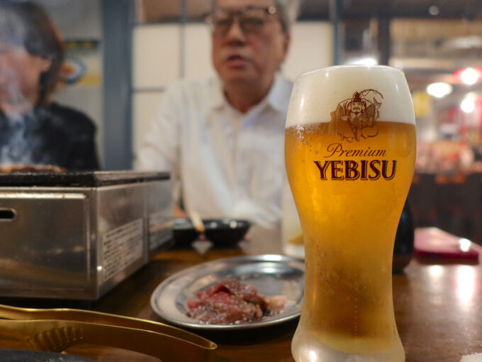 まずはビールから。樽生ビールは蝦夷鹿を扱っているからか、サッポロビールでした。黒ラベル&ヱビスビールがありました。