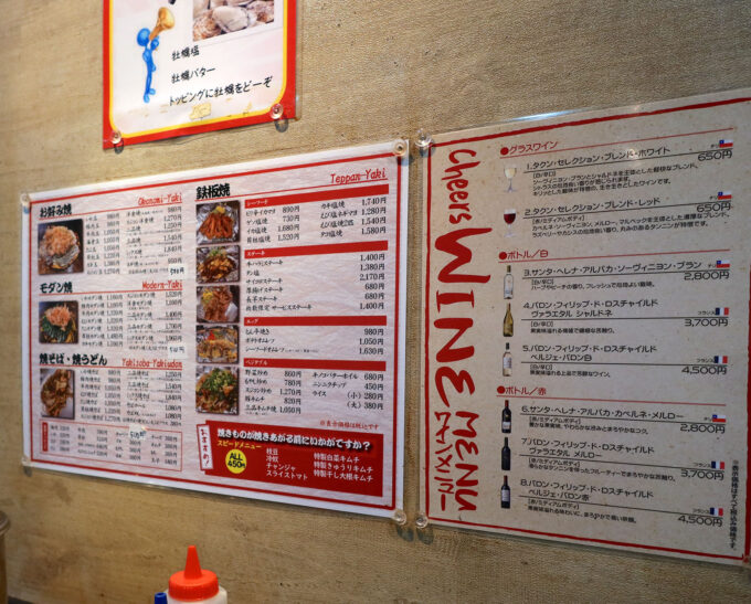 メニューの構成はお好み焼、モダン焼き、焼きそばとスタンダードな構成です。まずはお好み焼とモダン焼きをオーダーしつつ…